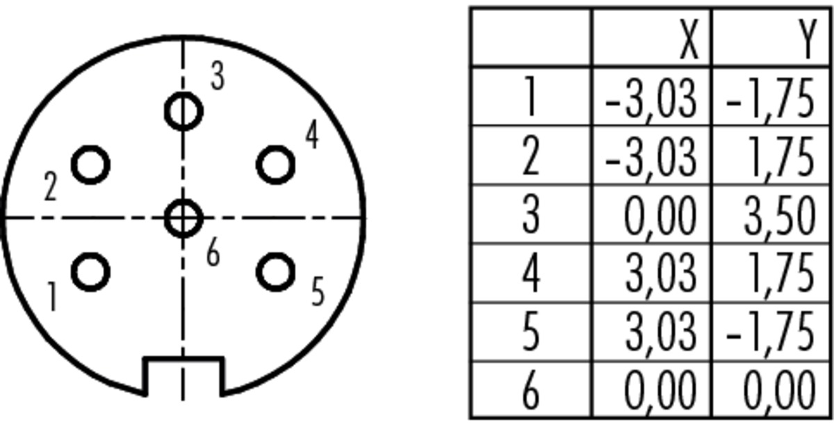 Количество контактов: 6 DIN, male panel mount connector, crimp, screwed from front.