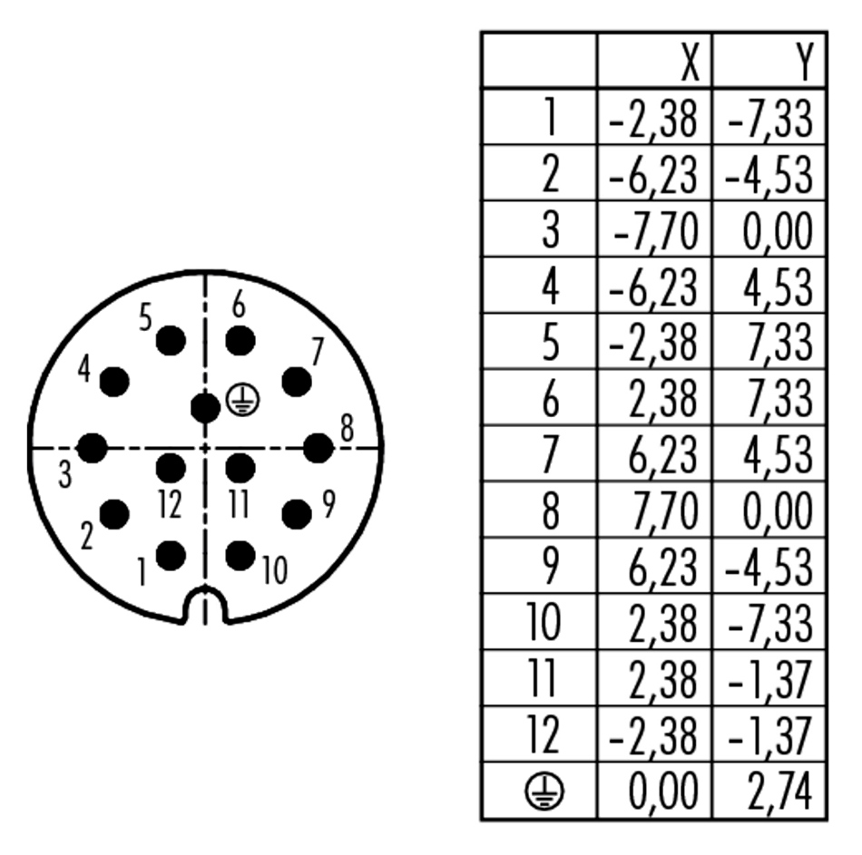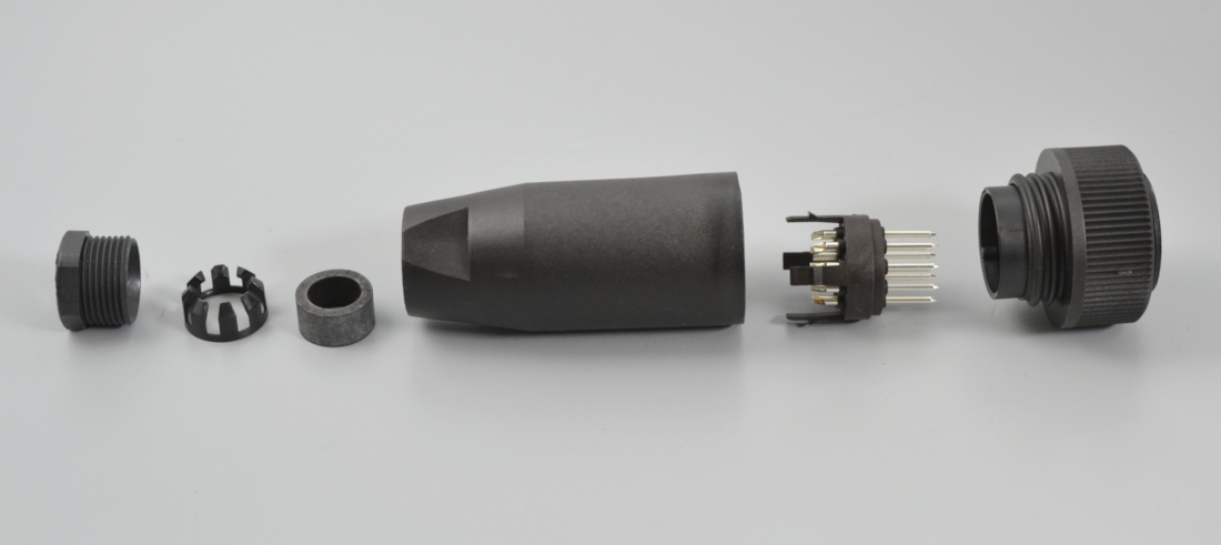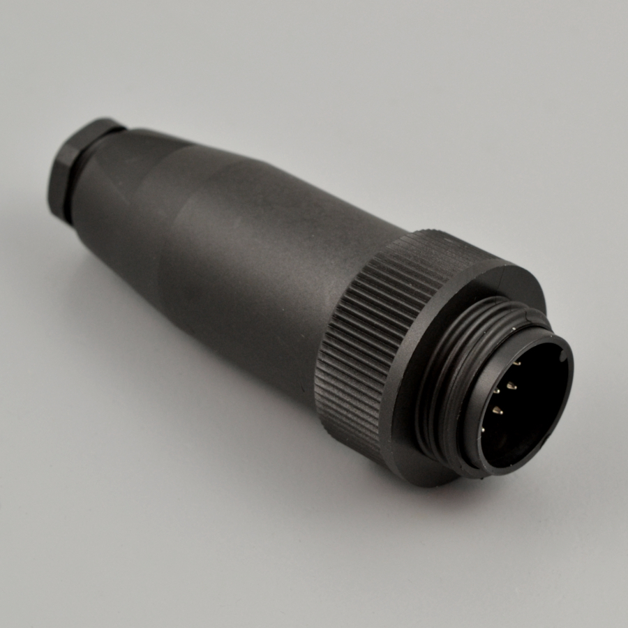 Прямой круглый разъём, контакты: 12+PE, вилка (папа), Iном. = 6A, Uном. = 250 В, выводы под пайку, тип монтажа: на кабель Ø10-12 мм, степень защиты IP65, без экранирования, тип фиксации: RD 30 Locking.